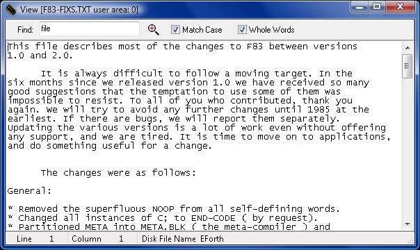 The Text Viewer in the disk manager window has been updated. The text viewer now includes simple text find functionality and displays the current cursor position at the bottom of the text viewer window.